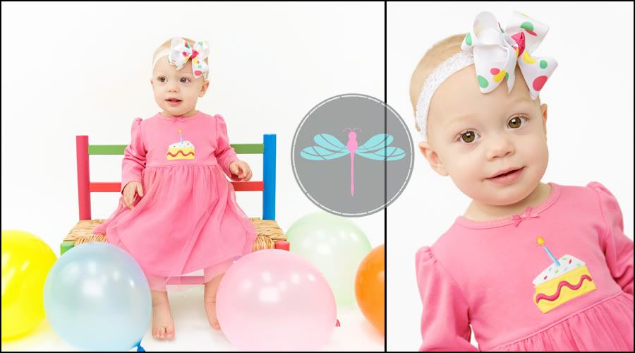 Cake, pretty dress, and lots of balloons! We celebrated little Miss A's first birthday up at the studio. You may recognize her dressed up as a little lamb from my Happy Halloween post on our Facebook page. (If you're not already a fan, we'd love you to become one!) Mom brought her up for a 2 hour session to do pictures for her birthday, Halloween and Christmas! There was lots of dressing up and little Miss A didn't slow down once! :)