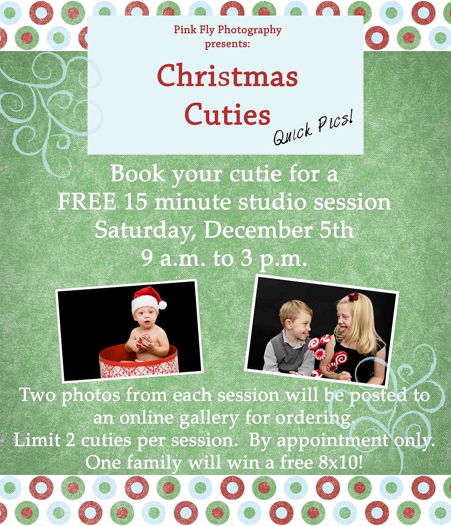 Haven't had the time to get Christmas pictures of the kids? We are offering for one day only a free 15 minute mini session at our studio in Allen, TX. All pictures will be taken on a black background and we have lots of fun Christmas props to choose from. For more information please feel free to email me at misti@pinkflyphoto.com